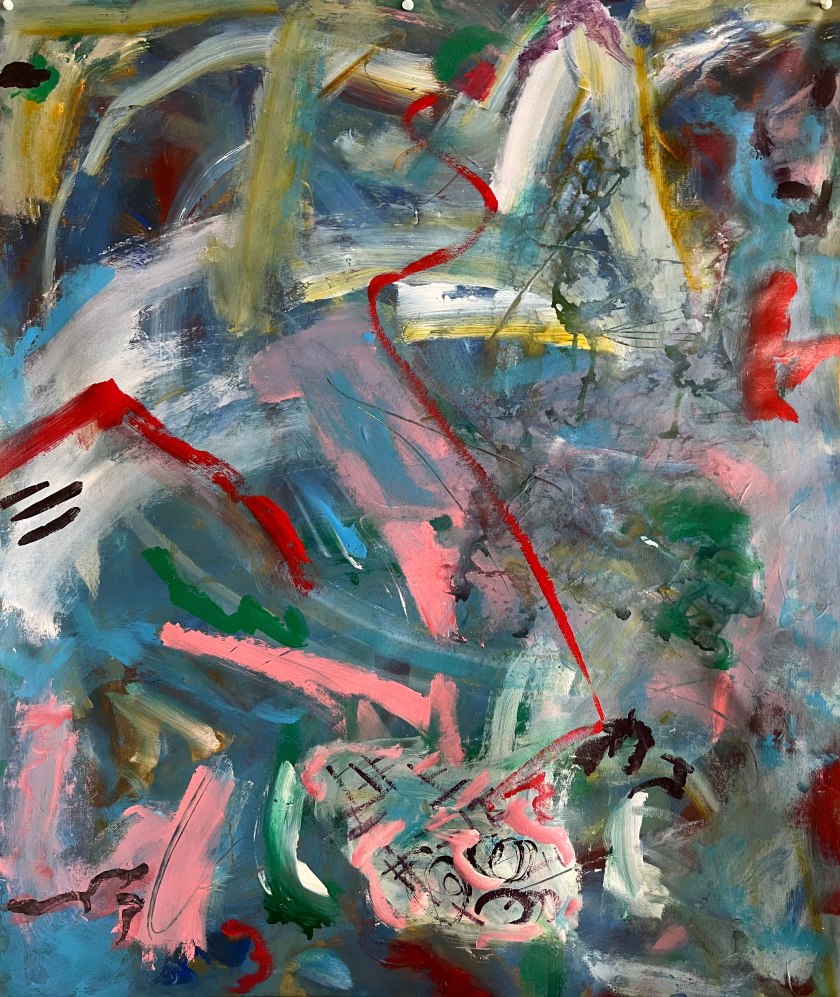 “Blue Direction II,” 38″x32,” Acrylic on Canvas