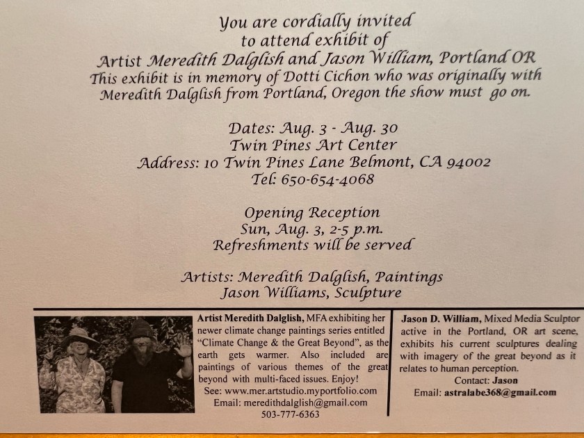 Explore powerful works reflecting on our planet’s future. Don’t miss it! 🌍 “Climate Change” Art Series Now showing at Twin Pines Art Center, Belmont, CA — through the end of August!